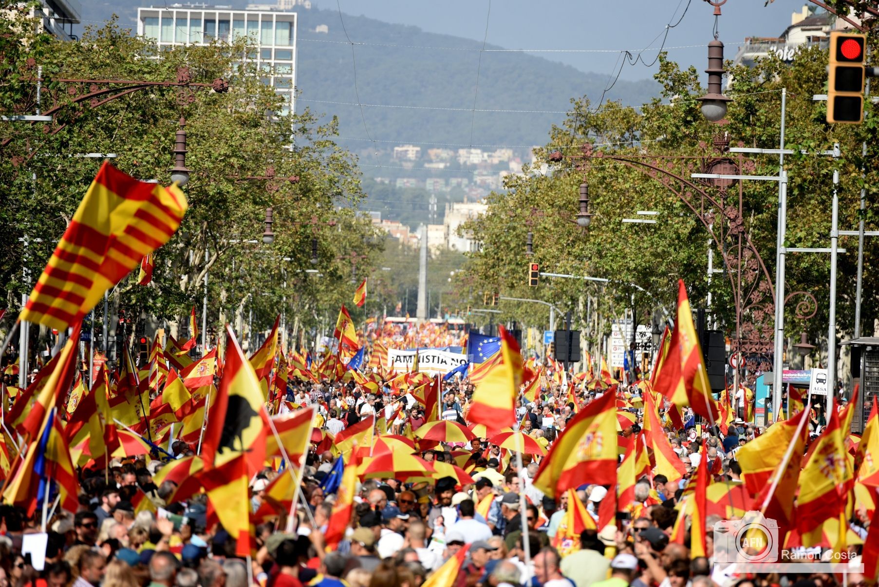11/09/2020 Unas mil personas se concentran por la Diada en la Rambla Nova de Tarragona en una manifestación estática con mascarilla y separados con las medidas de seguridad y restricciones por la crisis sanitaria del Covid-19