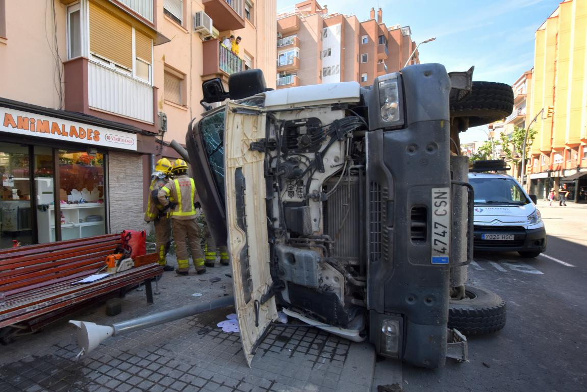 Un camion hormigonera vuelca en el centro de L´Hospitalet