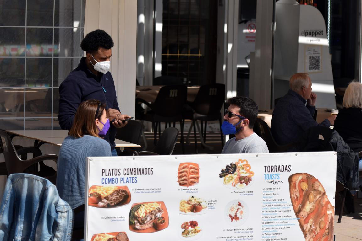 11/5/2020 El Vendrell Tarragona. La Fase 1 decretada en el Camp de Tarragona permite a los bares y restaurantes de El Vendrell reactivar su economia abriendo solo tas terrazas y con un 50% de aforo y respetando los 2 metros de distancia seguridad