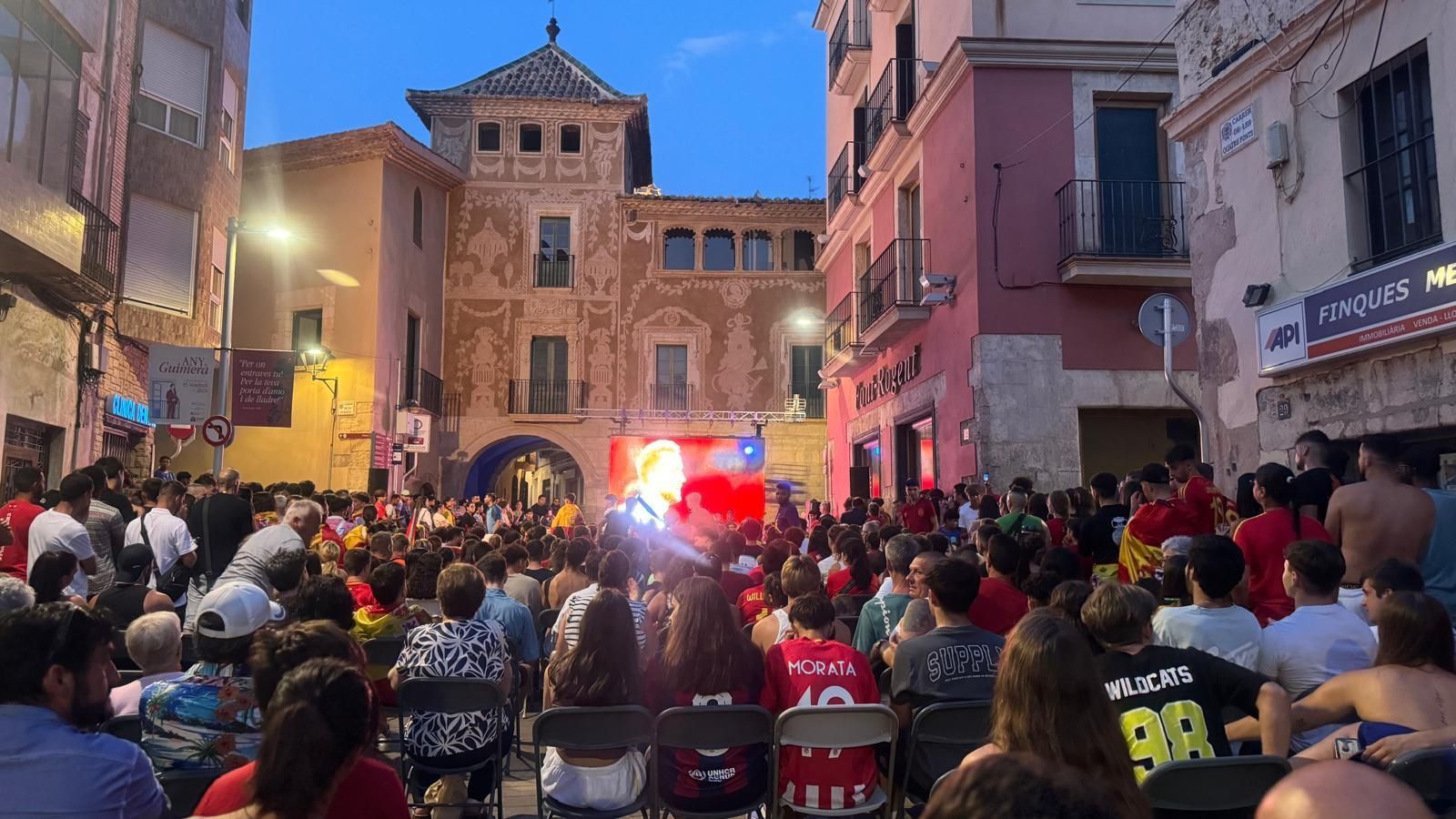 El ayuntamiento de El Vendrell instala una pantalla gigante para ver la final de la Eurocopa España Inglaterra donde la selección española logro el triunfo y unas mil persona pudieron disfrutar de la victoria de su equipo