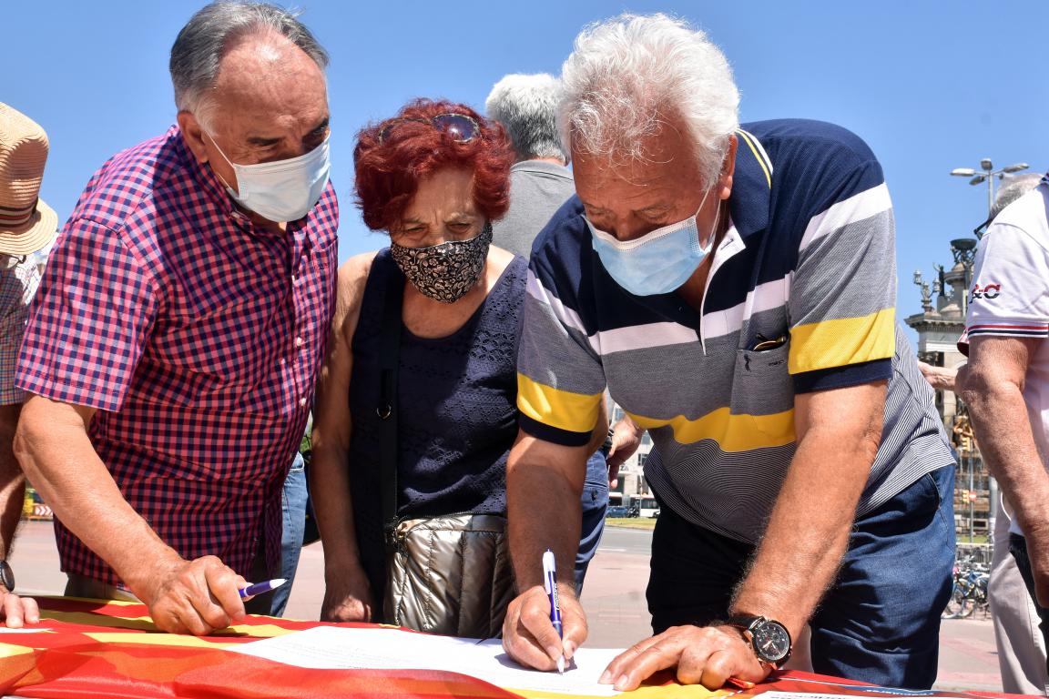 11/09/2020 Unas mil personas se concentran por la Diada en la Rambla Nova de Tarragona en una manifestación estática con mascarilla y separados con las medidas de seguridad y restricciones por la crisis sanitaria del Covid-19